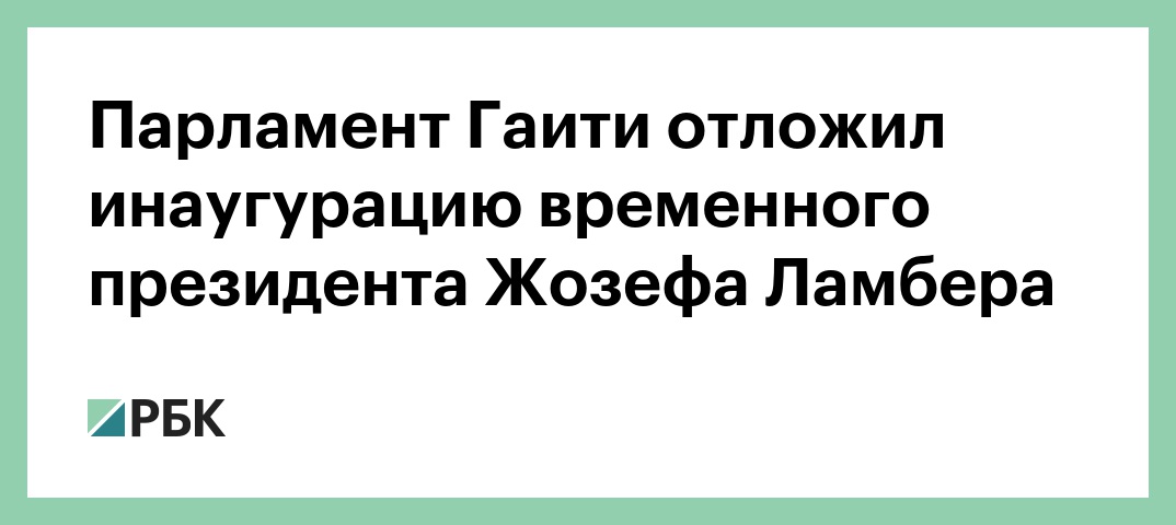 Верхняя палата парламента Гаити приняла решение отложить инаугурацию временного президента республики. Об этом на своей странице в Twitter сообщил председатель сената Гаити Жозеф Ламбер, который должен занять эту должность.