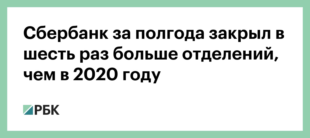 Сбербанк за полгода закрыл в шесть раз больше отделений, чем в 2020 году
