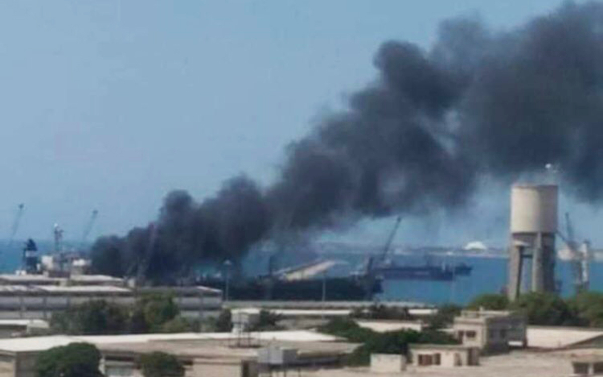 В сирийском порту загорелось судно