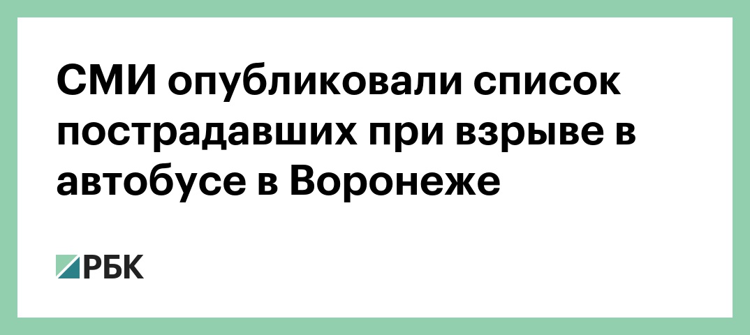 Телеканал РЕН ТВ опубликовал список людей, которые пострадали в результате взрыва в автобусе в Воронеже. Также фамилии пострадавших сообщает Telegram-канал Mash: