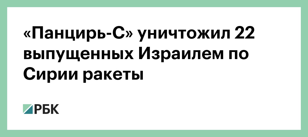 Дежурные силы противовоздушной обороны Сирии из находящихся на вооружении комплексов российского производства «Бук-М2Э» и «Панцирь-С» уничтожили 22 ракеты, выпущенные Израилем. Об этом заявил заместитель руководителя Центра по примирению враждующих сторон контр-адмирал Вадим Кулить. Его слова передали РБК в пресс-службе центра.