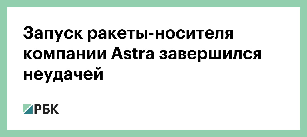 Запуск ракеты-носителя компании Astra завершился неудачей