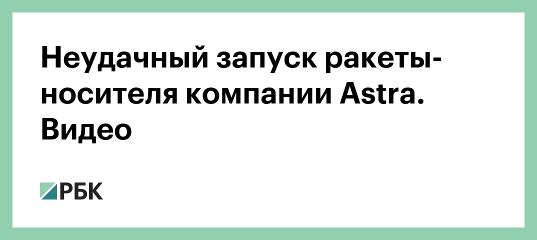 Общество29 августа 2021, 11:28Неудачный запуск ракеты-носителя компании Astra. ВидеоТестовый запуск ракеты-носителя Rocket 3 американской компании Astra, продлился 2,5 минуты и закончился неудачей из-за технических проблемВходит в сюжетыВ этой статьеРБК в MAXНа связи с проверенными новостямиЧитайте РБК в MAХ! Самые важные новости, только проверенная информация. Зеленский рассказал о требовании США уйти из Донбасса ради гарантий МВД предложило сделать платным доступ банков к базам полиции Иран разрешил России и еще четырем странам проход по Ормузскому проливу WSJ узнала, что США убрали из целей двух чиновников Ирана для переговоров Bloomberg: США изучают, какие последствия будут у скачка цен на нефть до $200 На Чукотке проведут серию аукционов на месторождения россыпного золота ТегикосмосракетаСШАвидео