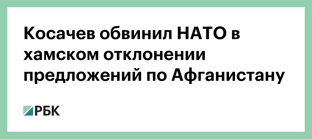 Косачев, комментируя заявление генсека НАТО, заявил, что альянс «последовательно, неоднократно, высокомерно, а порой и откровенно хамски» отклонял предложения Организации Договора о коллективной безопасности по взаимодействию с НАТО по антитеррору в Афганистане.