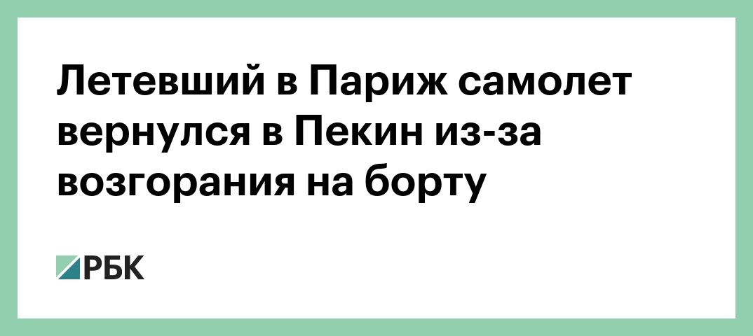 Пассажирский самолет, летевший по маршруту Пекин — Париж, вернулся в аэропорт вылета из-за возгорания на борту, сообщает китайское издание «Бэйцзин жибао».