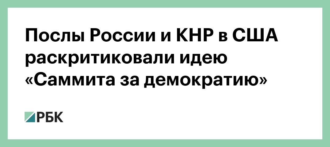 Россия и Китай раскритиковали идею международного «Саммита за демократию», который пройдет в декабре по инициативе США из-за идеологической конфронтации, которая противоречит развитию современного мира. Об этом говорится в совместной статье послов России и КНР в National Interest.