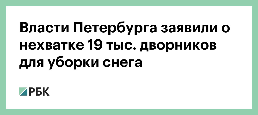 Власти Петербурга заявили о нехватке 19 тыс. дворников для уборки снега