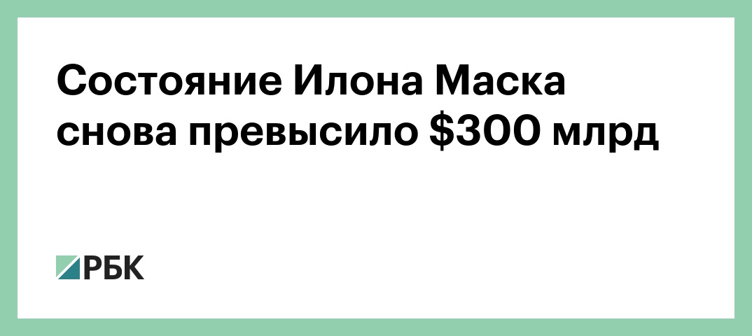 До этого капитал предпринимателя поднимался выше планки $300 млрд в ноябре. Основатель SpaceX и сооснователь Tesla считается самым богатым человеком в мире. Его капитал более чем на $100 млрд превышает состояние руководителя Louis Vuitton Moet Hennessy Бернара Арно, который занимает второе место. На третьей позиции — основатель Amazon Джефф Безос.