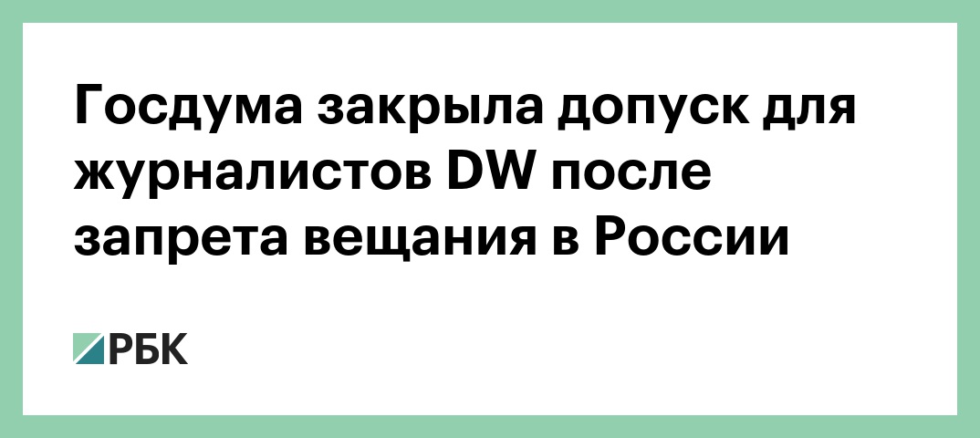 «По поручению председателя Государственной думы Вячеслава Володина в ответ на запрет вещания телеканала «RT DE» в ФРГ принято решение запретить допуск в Государственную думу журналистов германской телерадиокомпании «Дойче Велле», — сказано в сообщении.