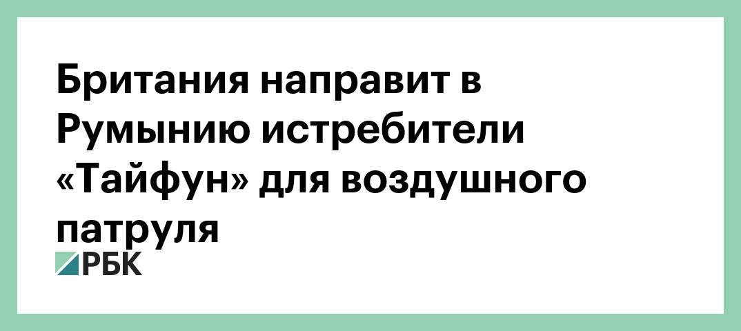 Королевские военно-воздушные силы Великобритании направят истребители Typhoon («Тайфун») для патрулирования воздушного пространства Румынии в свете напряженности в Восточной Европе. Об этом сообщил министр обороны Великобритании Бен Уоллес в интервью газете The Times.