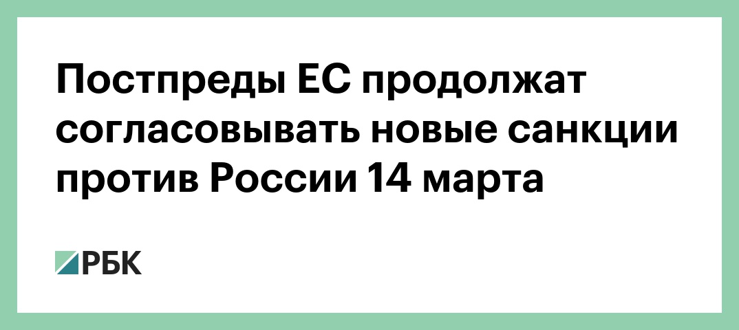 «Европейская комиссия и Европейская внешнеполитическая служба представили свои предложения по новым санкциям, составленные по итогам Версальского саммита (ЕС) и по итогам консультаций с нашими международными партнерами. Окончательная доработка и утверждение [проекта санкций] ожидаются завтра на COREPER (Комитет постоянных представителей в ЕС. — РБК)», — говорится в сообщении.