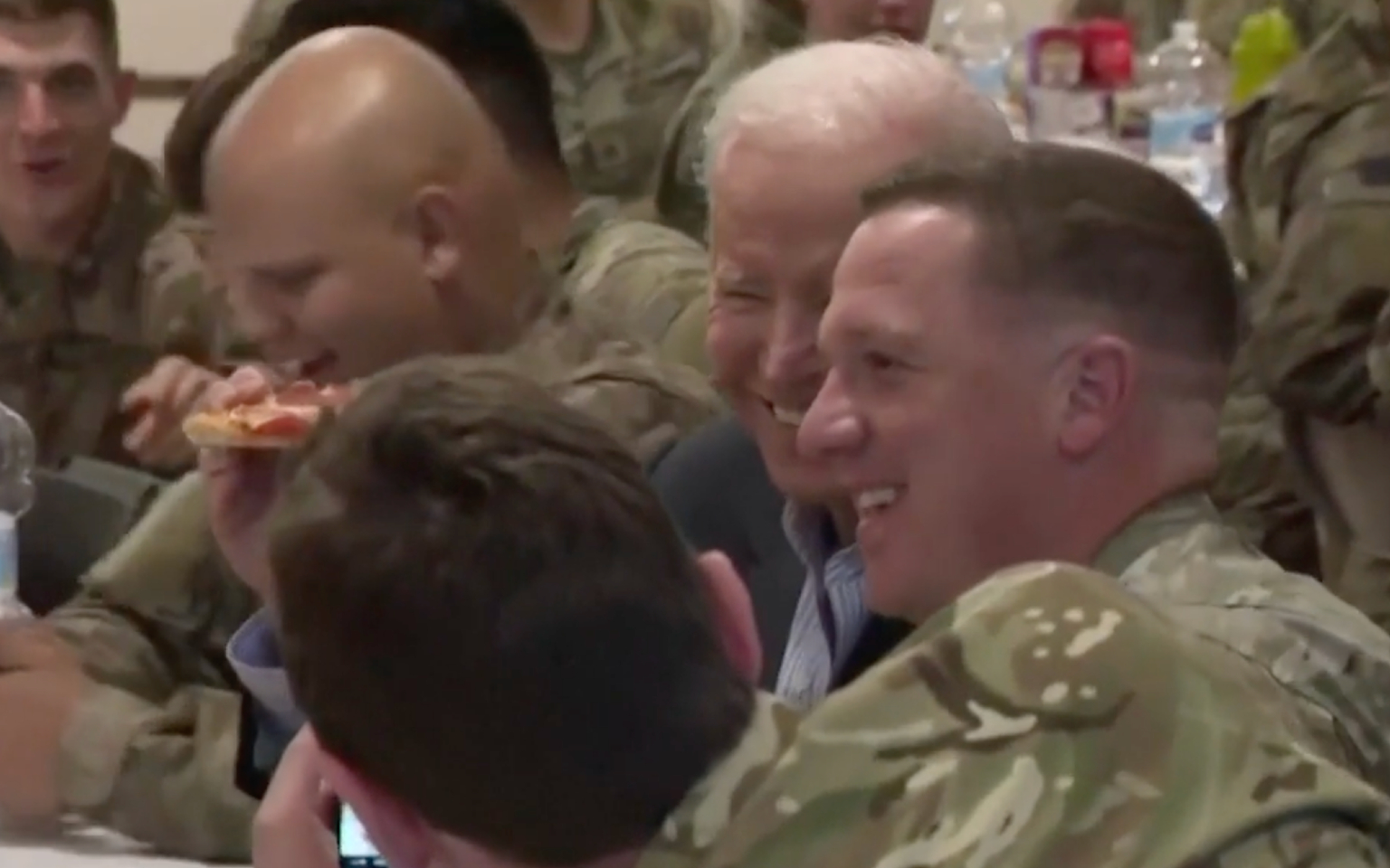 Байден поел пиццу с американскими солдатами в Польше. Видео