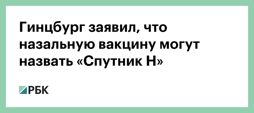 Назальная вакцина от COVID-19 может получить название «Спутник Н», где «Н» — назальный, заявил «РИА Новости» директор Национального исследовательского центра эпидемиологии и микробиологии имени Н.Ф. Гамалеи Александр Гинцбург.