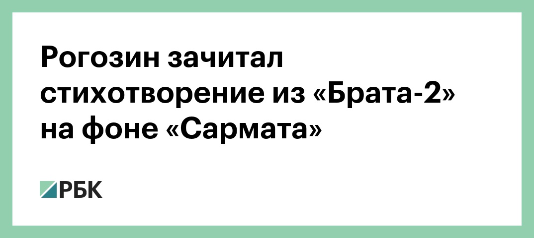 Рогозин зачитал стихотворение из «Брата-2» на фоне «Сармата»