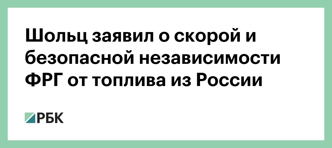 «Старая формула, что Россия является надежным экономическим партнером даже в кризисных ситуациях, больше не применяется», — сказал Шольц, подчеркнув, что независимости от российских поставок нужно добиться как можно скорее, «но и так безопасно, как это необходимо».