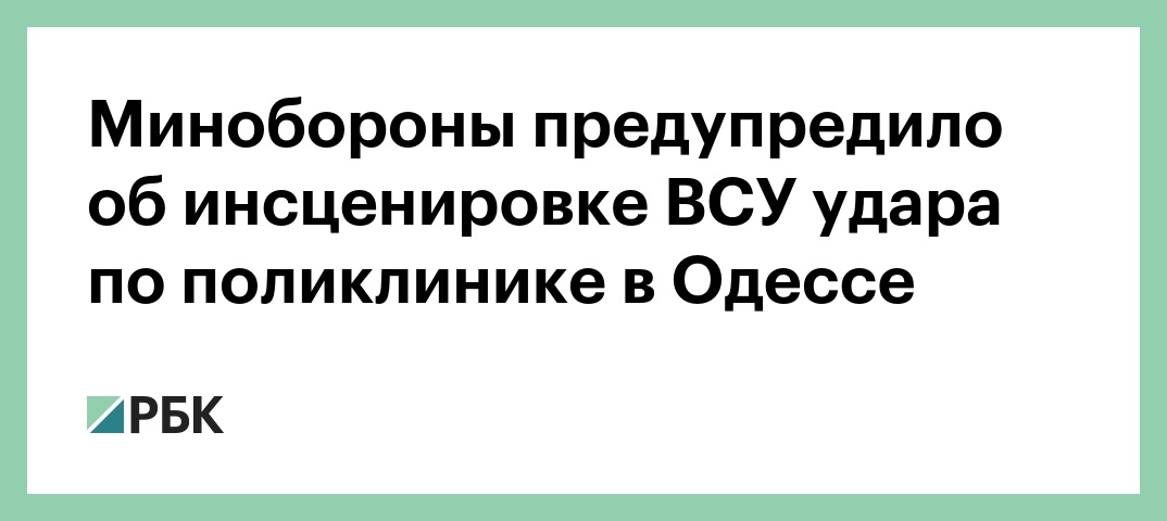 Минобороны предупредило об инсценировке ВСУ удара по поликлинике в Одессе