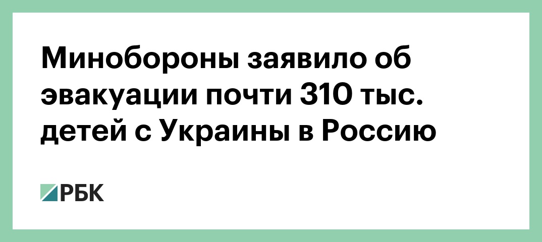 Минобороны заявило об эвакуации почти 310 тыс. детей с Украины в Россию