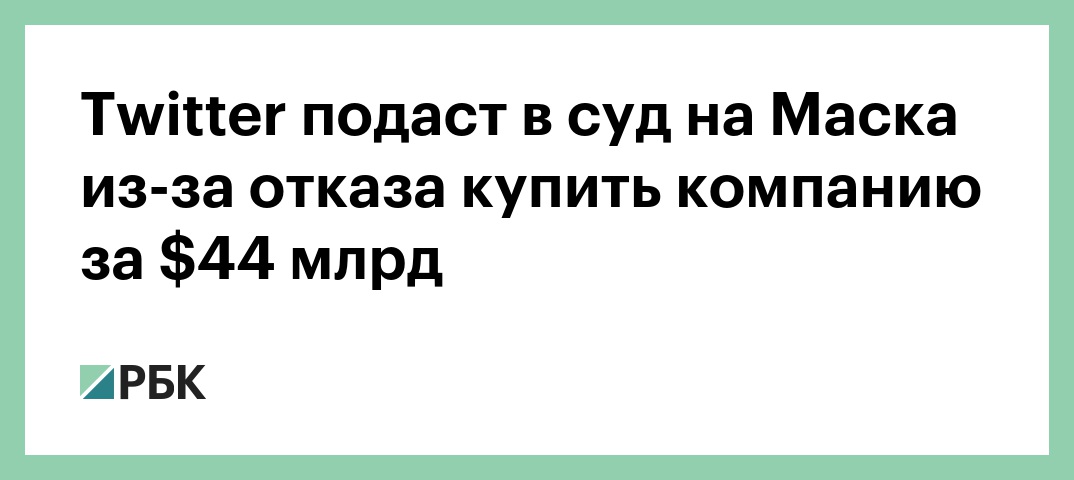 «Совет директоров Twitter намерен закрыть сделку по цене и условиям, которые были согласованы с господином Маском, и планирует подать в суд, чтобы обеспечить соблюдение соглашения о слиянии. Мы уверены, что выиграем в канцлерском суде Делавэра», — написал Тэйлор в Twitter.