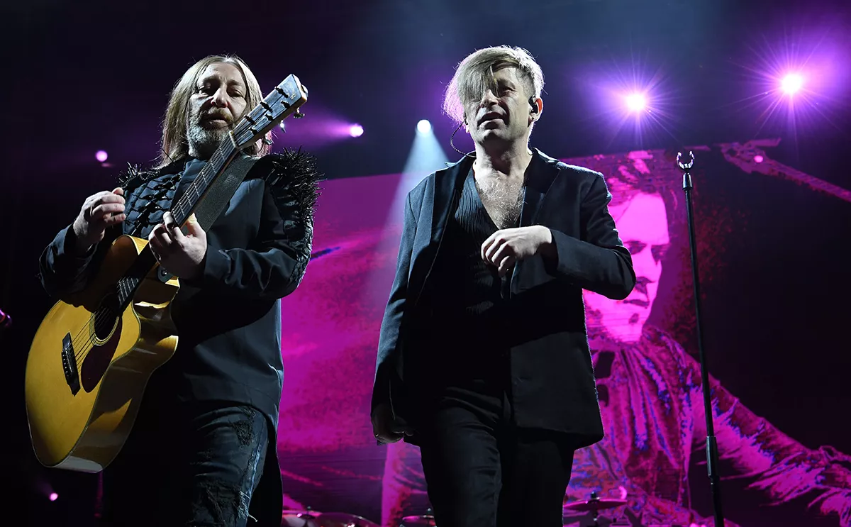 Слева направо: участники рок-группы «Би-2» Шура (Александр Уман) и Лёва (Егор Бортник)