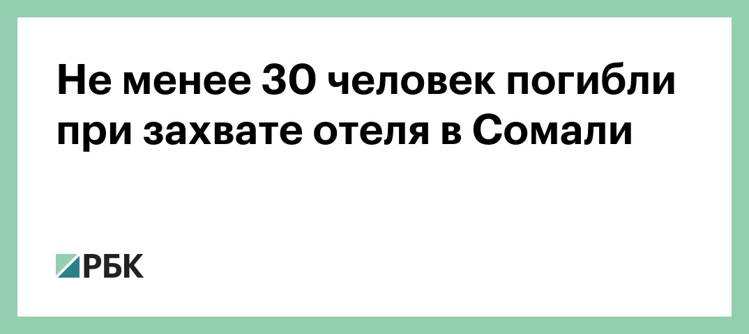 По меньшей мере 30 человек погибли и десятки ранены после того, как боевики террористической группировки «Аш-Шабаб», связанные с «Аль-Каидой» (запрещенная в России террористическая организация), захватили отель Hayat в Могадишо, сообщает Somali Guardian. При этом Associated Press пишет, что убитых не менее 20 человек, а пострадавших — не менее 40.