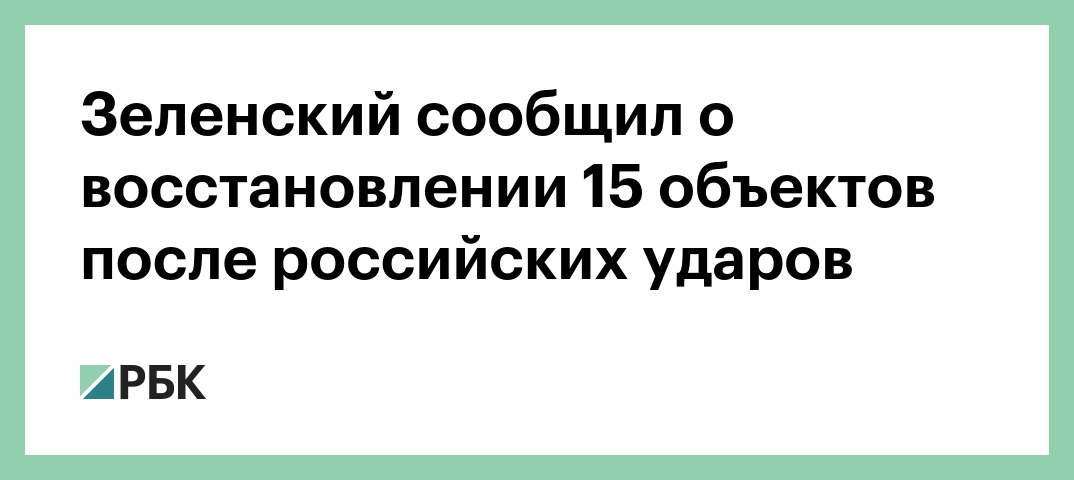 Зеленский сообщил о восстановлении 15 объектов после российских ударов