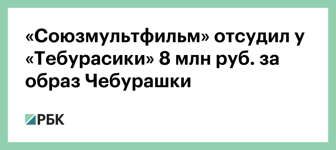 Арбитражный суд Москвы взыскал с владельцев ресторана «Тебурасика» 8 млн руб. в пользу «Союзмультфильма» за незаконное использование образов персонажей Чебурашки и Крокодила Гены в оформлении заведения, сообщили РБК в пресс-службе киностудии.