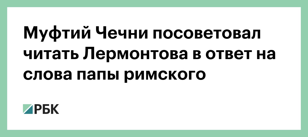 Муфтий Чечни посоветовал читать Лермонтова в ответ на слова папы римского о чеченцах