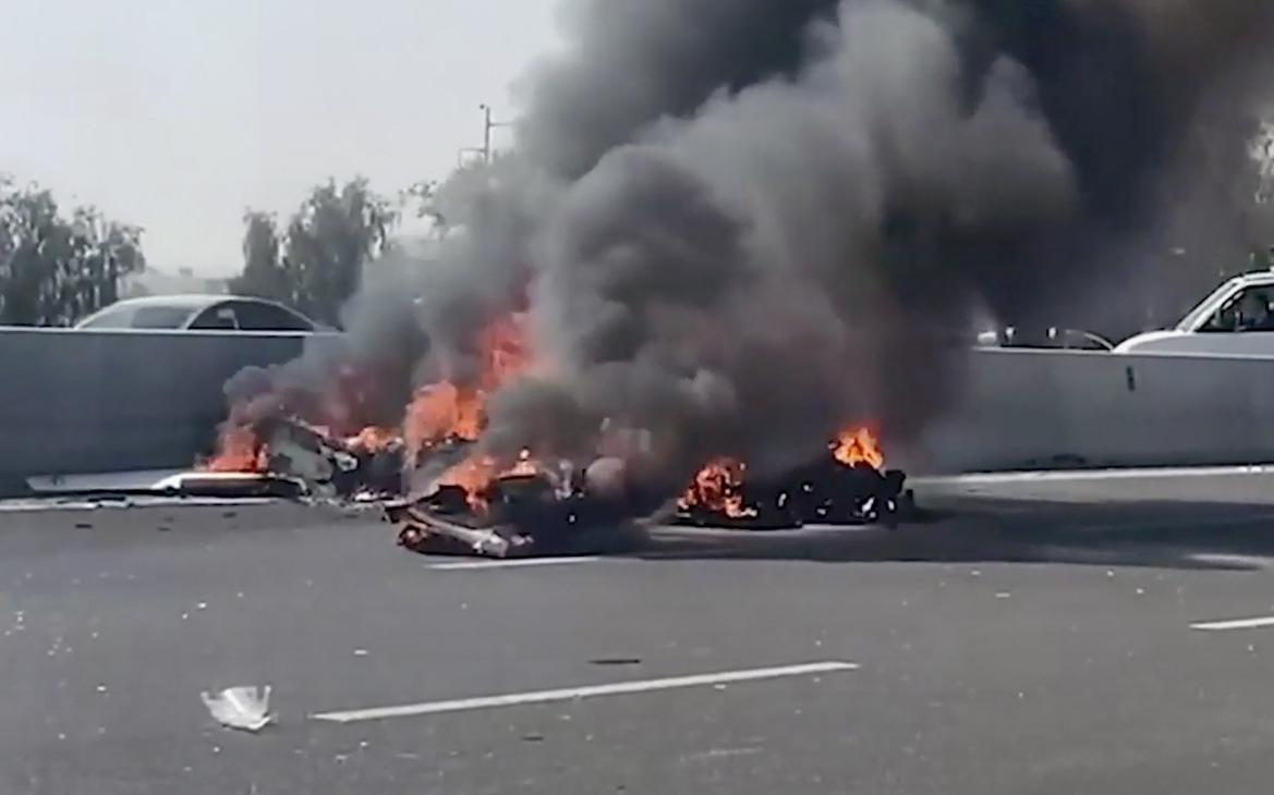 После столкновения с землей борт загорелся, летевшие в нем мужчина и женщина погибли на месте. Движение по шоссе ограничили в обе стороны.