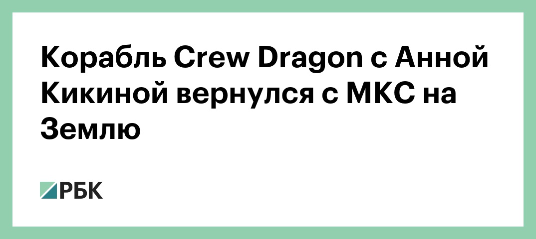 Корабль Crew Dragon c Анной Кикиной вернулся с МКС на Землю