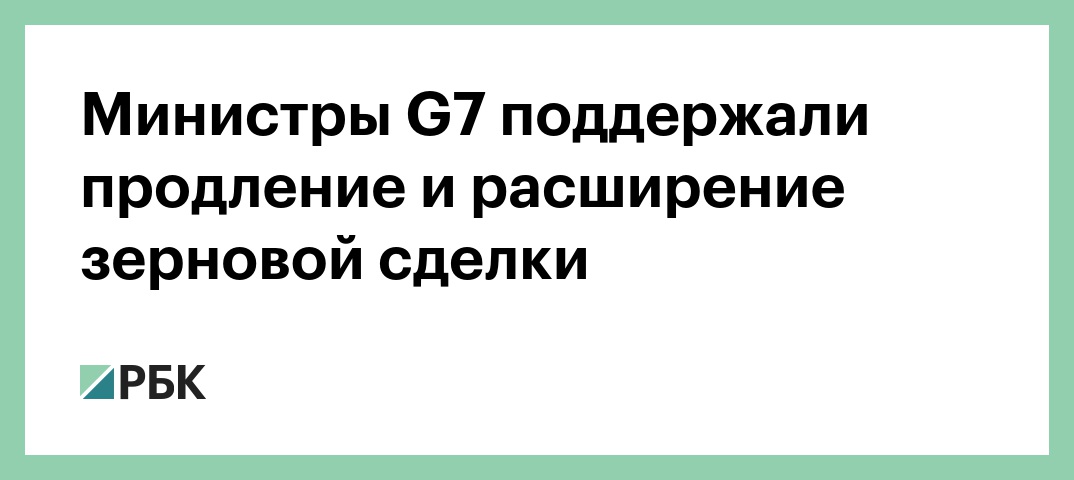 Министры сельского хозяйства «Большой семерки» (G7) призвали к «продлению, полному исполнению и расширению» зерновой сделки, сообщает Reuters со ссылкой на коммюнике.