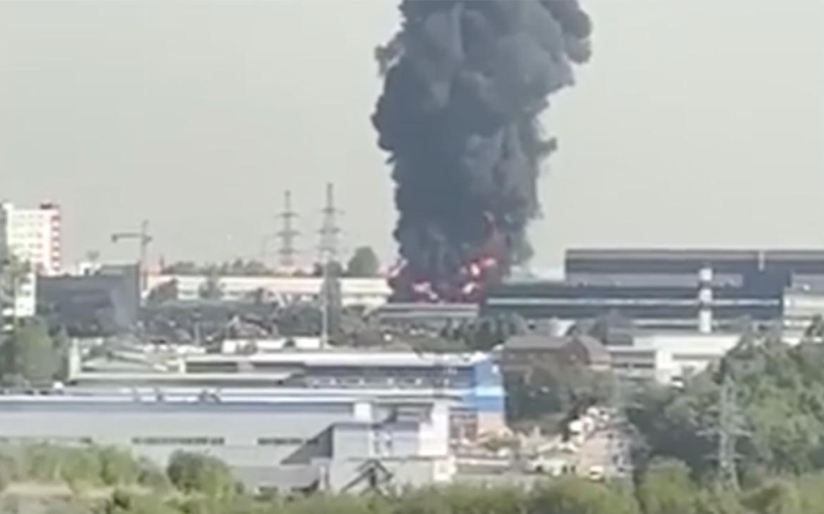 Покрышки загорелись в промзоне в подмосковном городе Дзержинский