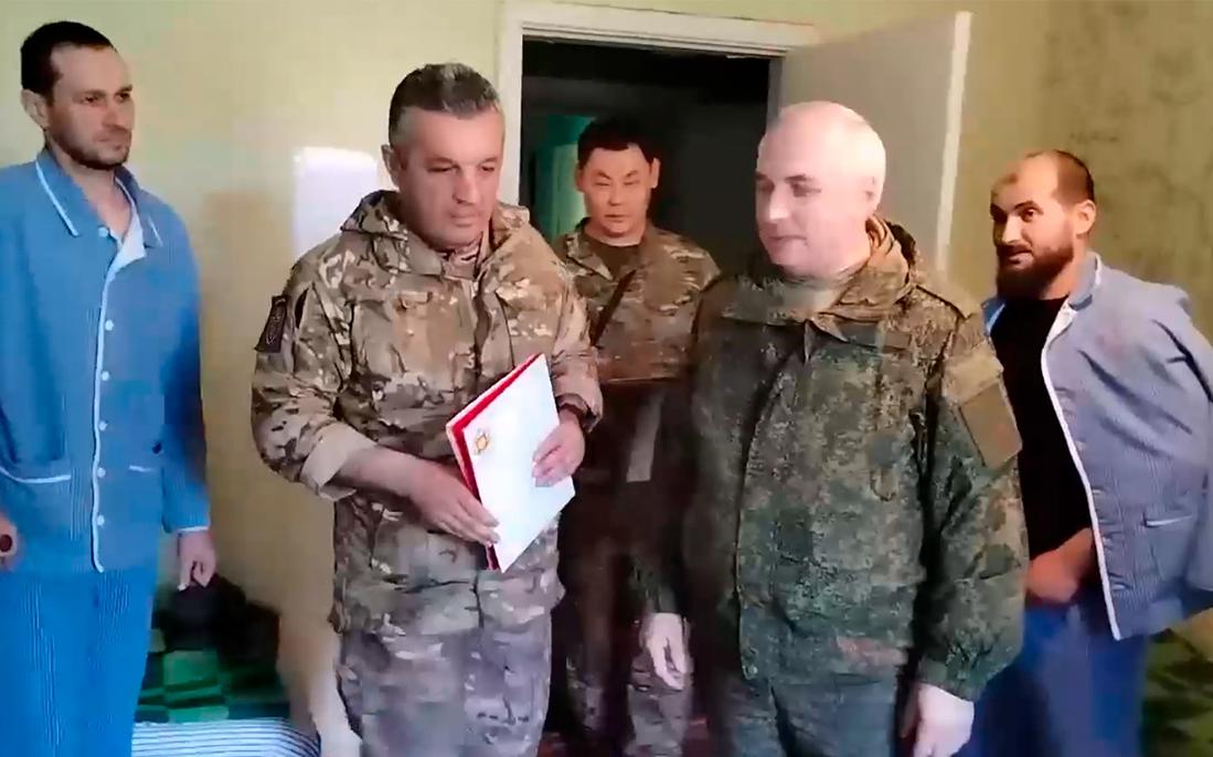«Он вручил военнослужащим ордена Мужества, медали «За отвагу» и знаки отличия ордена Святого Георгия — Георгиевский крест», — говорится в сообщении.
