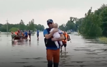 Работа спасателей в зоне затопления после разрушения Каховской ГЭС. Видео