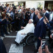 Выходя из больницы, понтифик остановил машину, чтобы поприветствовать присутствующих.