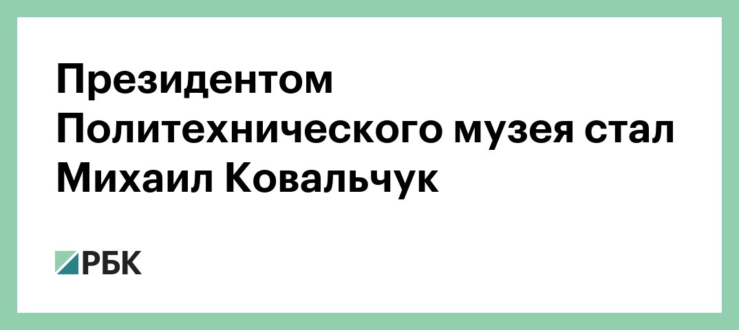 Президент Национального исследовательского центра (НИЦ) «Курчатовский институт» Михаил Ковальчук занял аналогичную должность в Политехническом музее. Соответствующий приказ подписала министр культуры Ольга Любимова, сообщает пресс-служба музея.