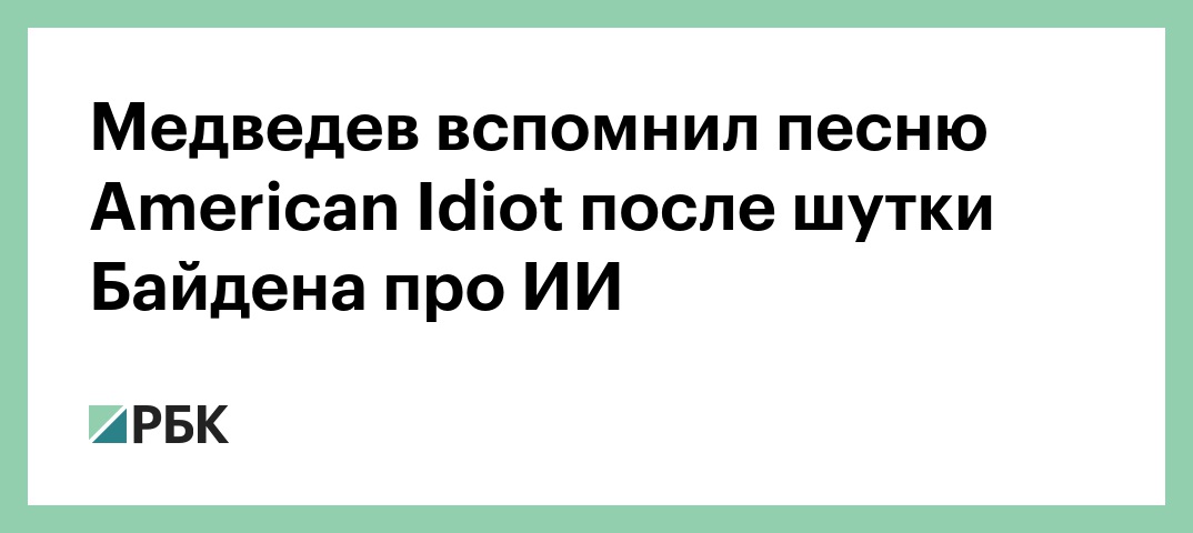 Зампред Совбеза Дмитрий Медведев вспомнил песню American Idiot американской рок-группы Green Day после шутки президента США Джо Байдена о том, что он является искусственным интеллектом.