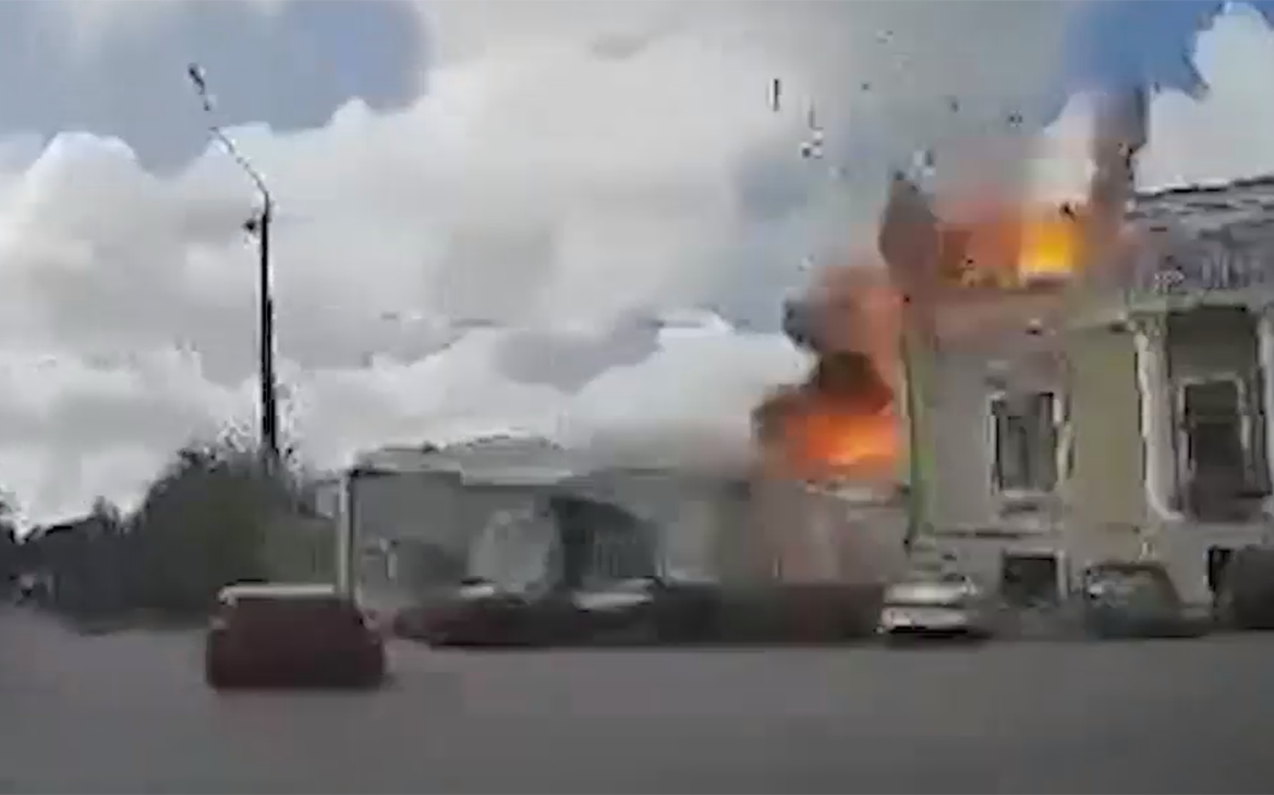 Момент взрыва в центре Таганрога при ракетной атаке. Видео