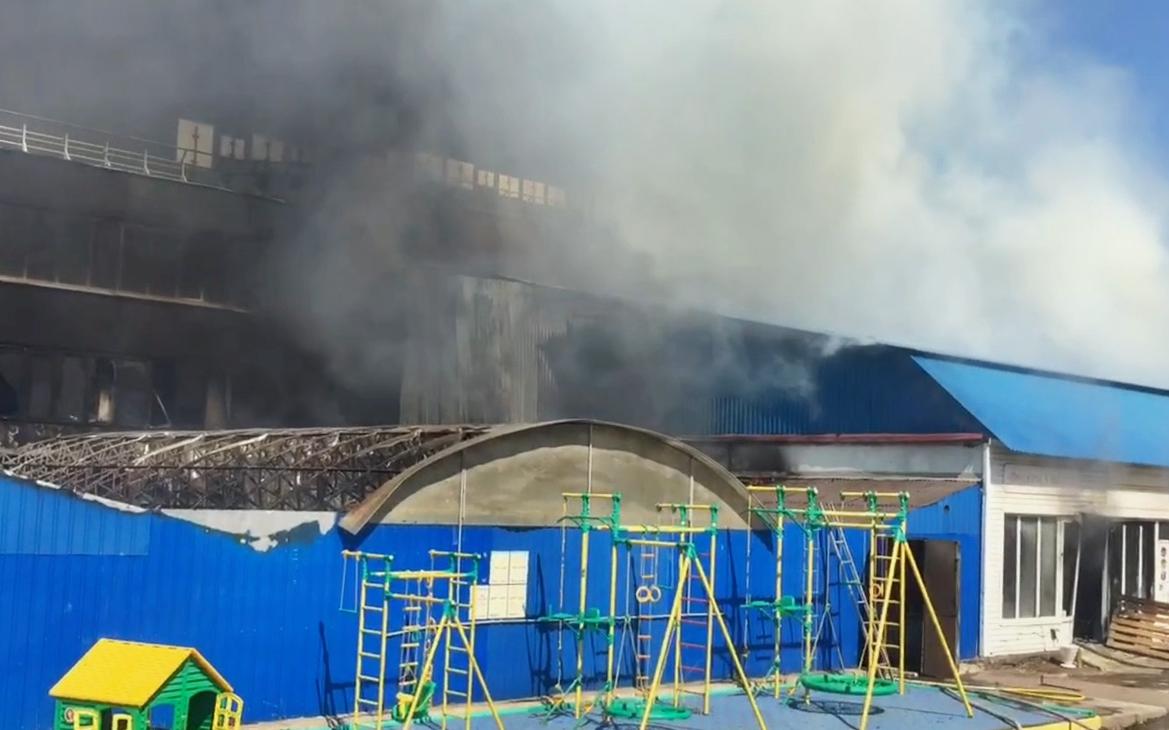 Площадь пожара на фабрике спорттоваров «Леко» достигла 1,2 тыс. кв. м