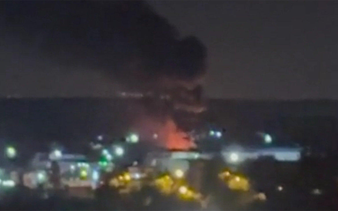 Появились кадры крупного пожара в автосервисе в Домодедово