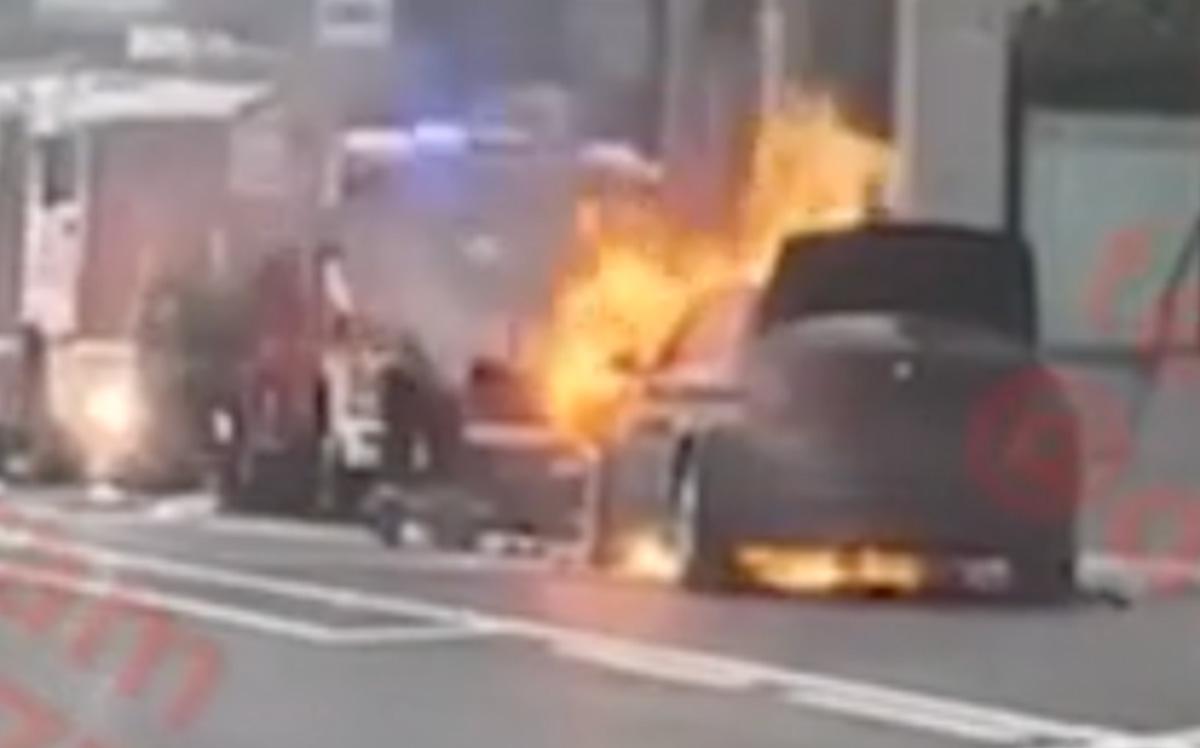 Телеграм-канал Shot опубликовал видео, где запечатлен момент начала возгорания Lamborghini. Водитель резко разогнался и проехал несколько метров, после чего машина начала дымиться, а затем загорелась. Судя по видео, водитель вышел из салона до того, как автомобиль полностью загорелся.