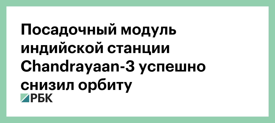 Посадочный модуль Vikram с луноходом Pragyan индийской межпланетной станции Chandrayaan-3 успешно снизил орбиту перед посадкой на Луну. Об этом сообщила Индийская организация космических исследований (ISRO) в своем Twitter.