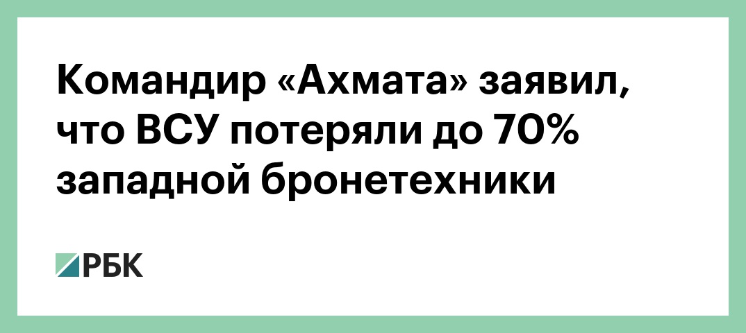 «Сегодня из той техники, которая была поставлена силам и средствам ВСУ, мы можем с уверенностью сказать, что 60–70% техники уже уничтожено», — сказал командир «Ахмата», добавив, что ВСУ уже пересмотрели свою изначальную тактику и начали наступать в пешем порядке.