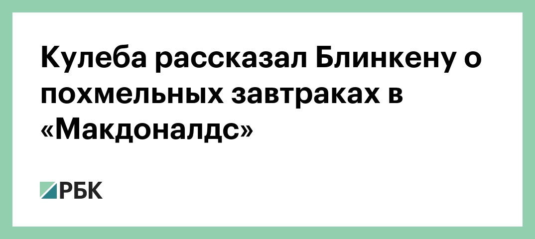 «Я ходил в «Макдональдс», покупал там двойной чизбургер и большую колу, и это был мой похмельный завтрак», — продолжил Кулеба. Блинкен в ответ сказал, что никогда так не делал.