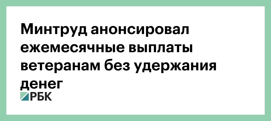 Минтруд анонсировал ежемесячные выплаты ветеранам без удержания денег
