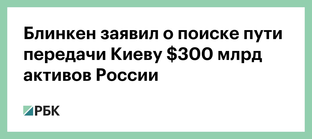 Блинкен: Запад изучает варианты передачи Киеву $300 млрд российских активов