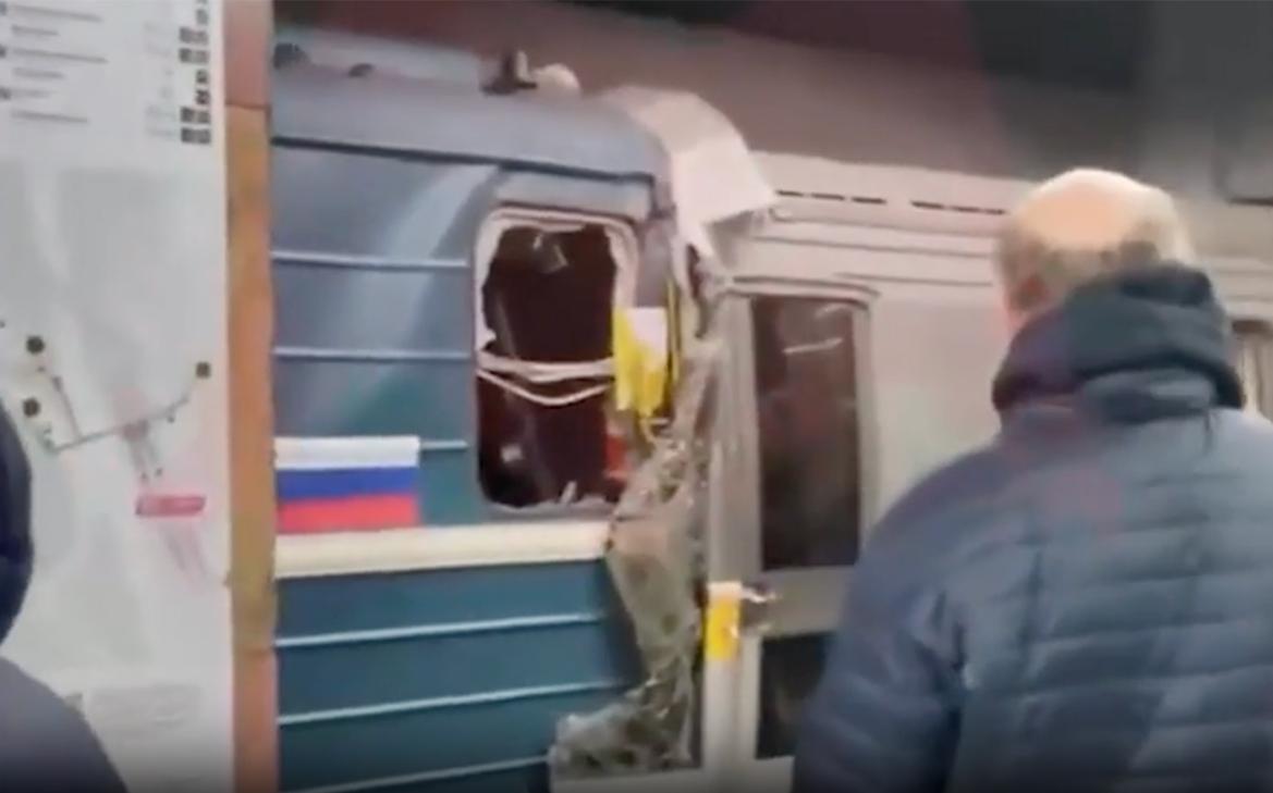 Кадры столкнувшихся поездов метро в Москве
