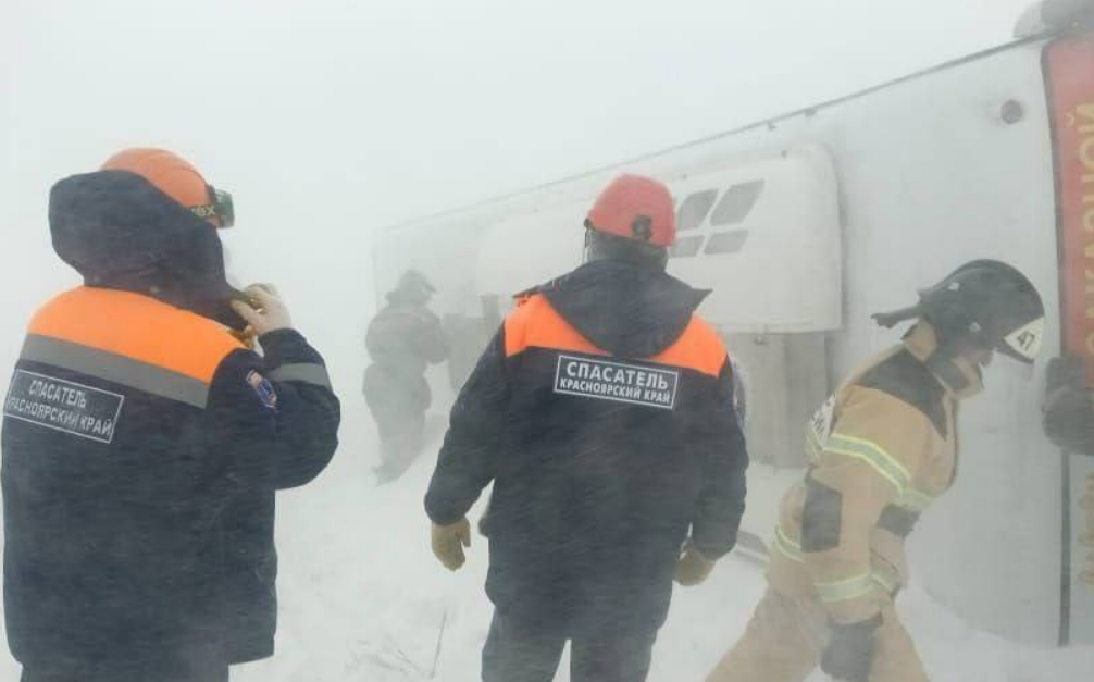 Появились кадры со сдутым с трассы автобусом в Красноярском крае