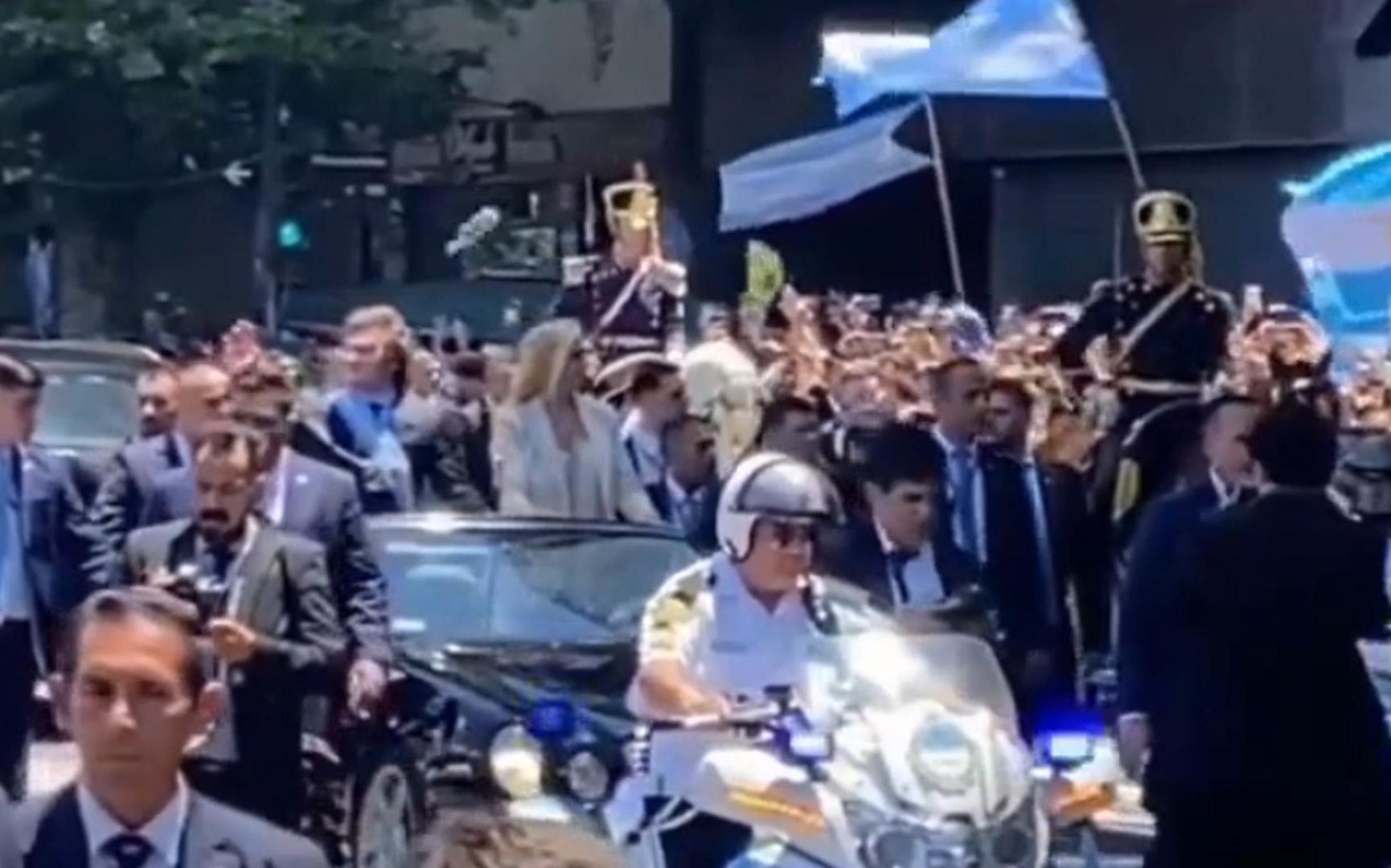 В нового президента Аргентины Хавьера Милея бросили бутылку, когда он садился в автомобиль после принесения присяги в конгрессе, сообщает La Nation.