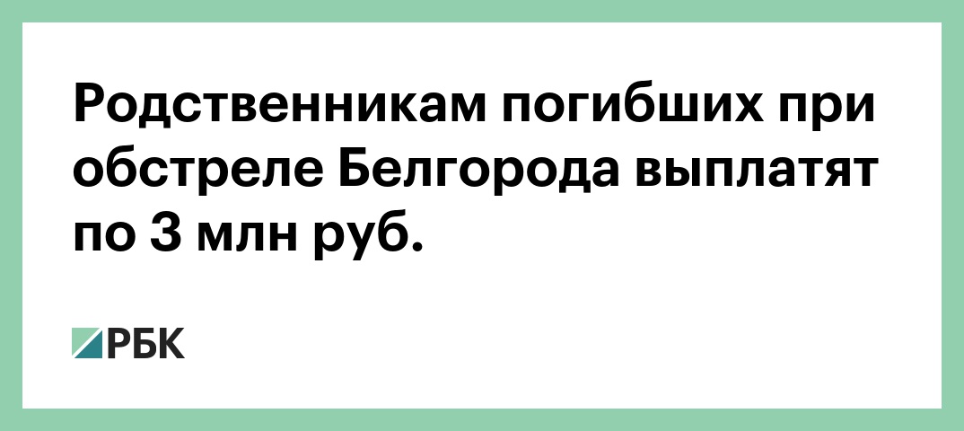 Родственникам погибших при обстреле Белгорода выплатят по 3 млн руб.