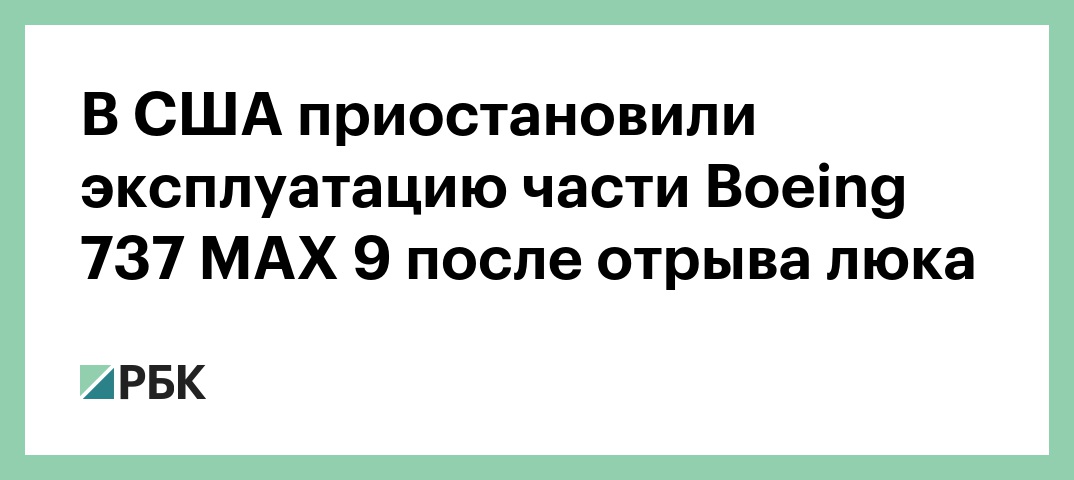 Федеральное управление гражданской авиации постановило приостановить эксплуатацию некоторых Boeing 737 MAX 9 после посадки лайнера с оторванным люком аварийного выхода в аэропорту Портленда. Решение затронет 171 самолет